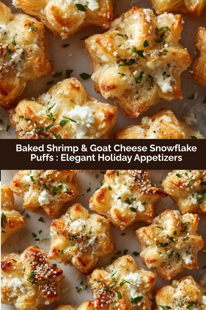 Well, my friend, I’m swooping in with your new secret weapon: Baked Shrimp & Goat Cheese Snowflake Puffs. Just saying the name makes me smile! Imagine this: delicate, flaky puff pastry, cut into beautiful snowflake shapes, hiding a secret pocket of the most incredible creamy, tangy, and savory filling. We’re talking soft goat cheese, a zip of lemon zest, and tender, herb-kissed shrimp, all baked together until golden brown and puffed to perfection.