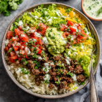 This isn’t just a pile of ingredients in a dish. This is a texture and flavor party. We’ve got warmly seasoned ground beef, fluffy jasmine rice, crisp romaine for that essential crunch, bright pico de gallo, and the creamy, dreamy superstar—homemade guacamole. The whole glorious ensemble gets tied together with a zesty, herby cilantro lime dressing that makes every single bite sing. It’s taco night, deconstructed and reinvented on your terms. Ready to cook up a little magic in under 20 minutes? Grab your favorite bowl and let’s make it happen together.