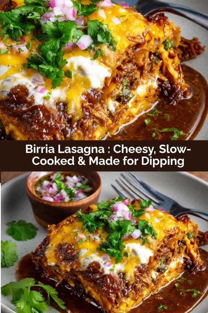 PrintBirria Lasagna : Cheesy, Slow-Cooked & Made for Dipping