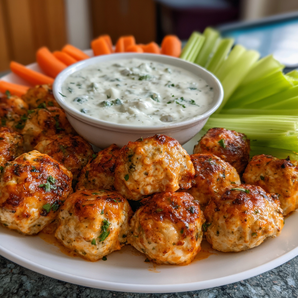 This recipe has lived many delicious lives in my kitchen. I’ve made them tiny for appetizers (reduce bake time to 12-14 mins) and giant for subs (form into 4 big patties and bake longer). The dip has evolved too—sometimes I add a pinch of dried dill or a minced garlic clove to the ranch version. One funny fail? I once forgot to add the breadcrumbs entirely. The result was… fragile. Let’s just say we had “Buffalo Chicken Crumbles” that night! They still tasted amazing piled on a salad, but lesson learned: the breadcrumbs are there for a (very good) reason. This recipe is forgiving and flexible, so play, taste, and make it yours.
