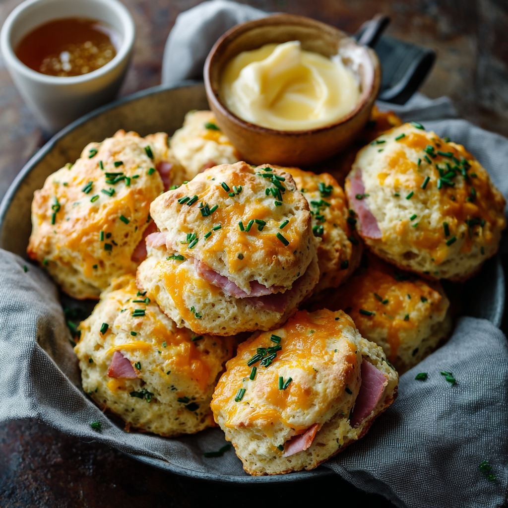 Cheddar Chive Biscuits with Ham and Honey Butter – Savory-Sweet Bites
