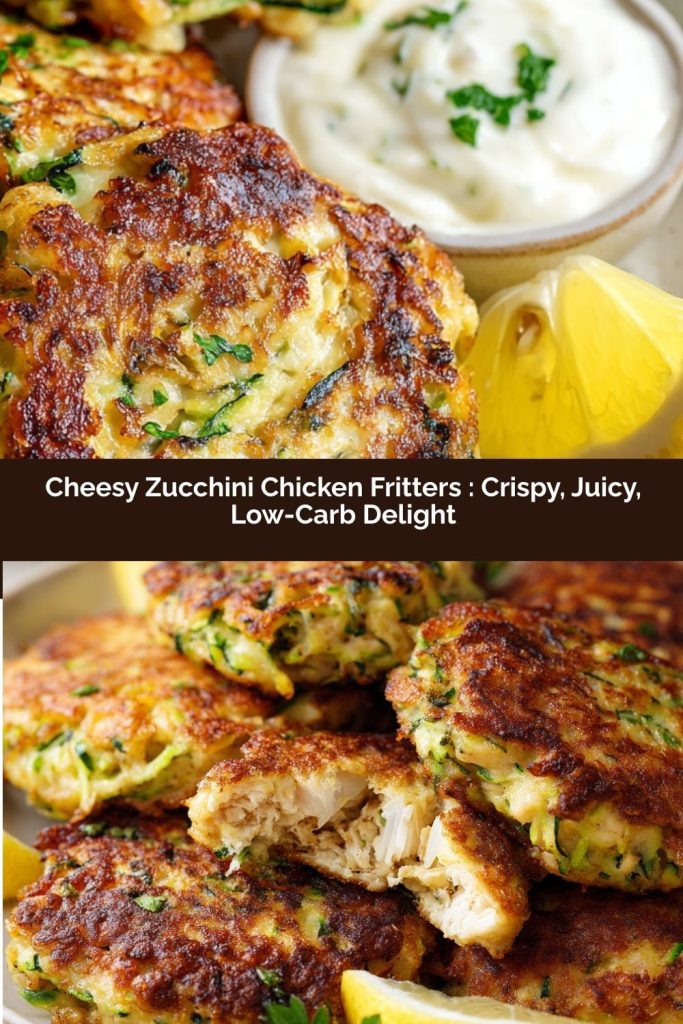 PrintCheesy Zucchini Chicken Fritters : Crispy, Juicy, Low-Carb Delight