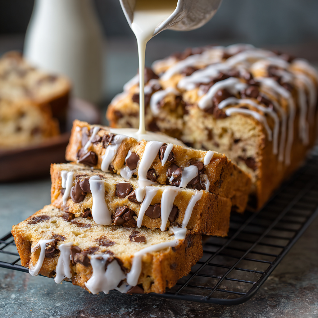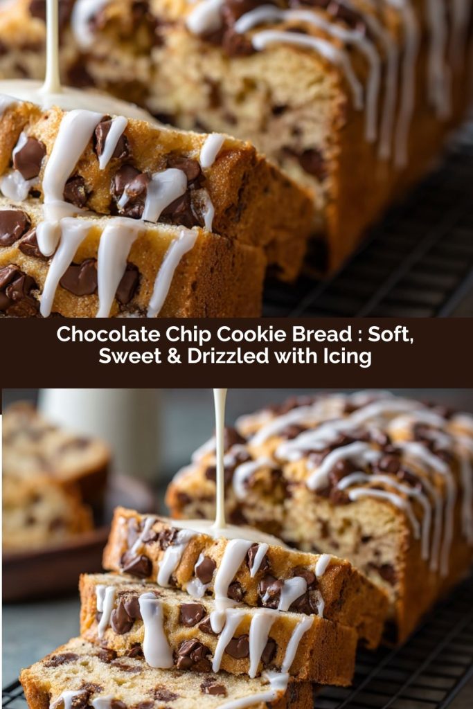 This Chocolate Chip Cookie Bread isn’t just a recipe—it’s a hug in loaf form. It’s got the best of both worlds: the nostalgia of a classic chocolate chip cookie and the sliceable, shareable joy of a soft, buttery cake. Whether you’re baking it for an afternoon snack, a weekend brunch, or a last-minute sweet fix, it’s easy, forgiving, and endlessly comforting. The smell alone will fill your kitchen with that warm, homey magic that makes everyone gather around the table. Don’t rush it—let it cool, drizzle on that glaze, and savor every slice. Trust me: once you try it, this loaf will become your new go-to sweet treat.