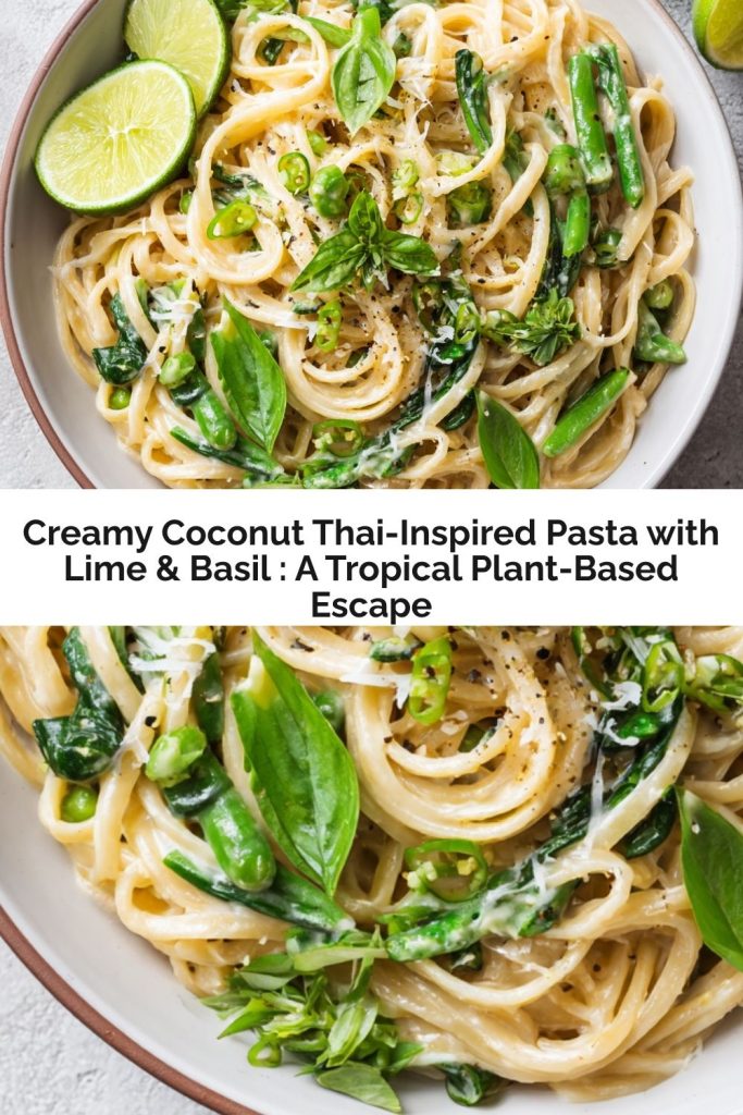 PrintCreamy Coconut Thai-Inspired Pasta with Lime & Basil : A Tropical Plant-Based Escape