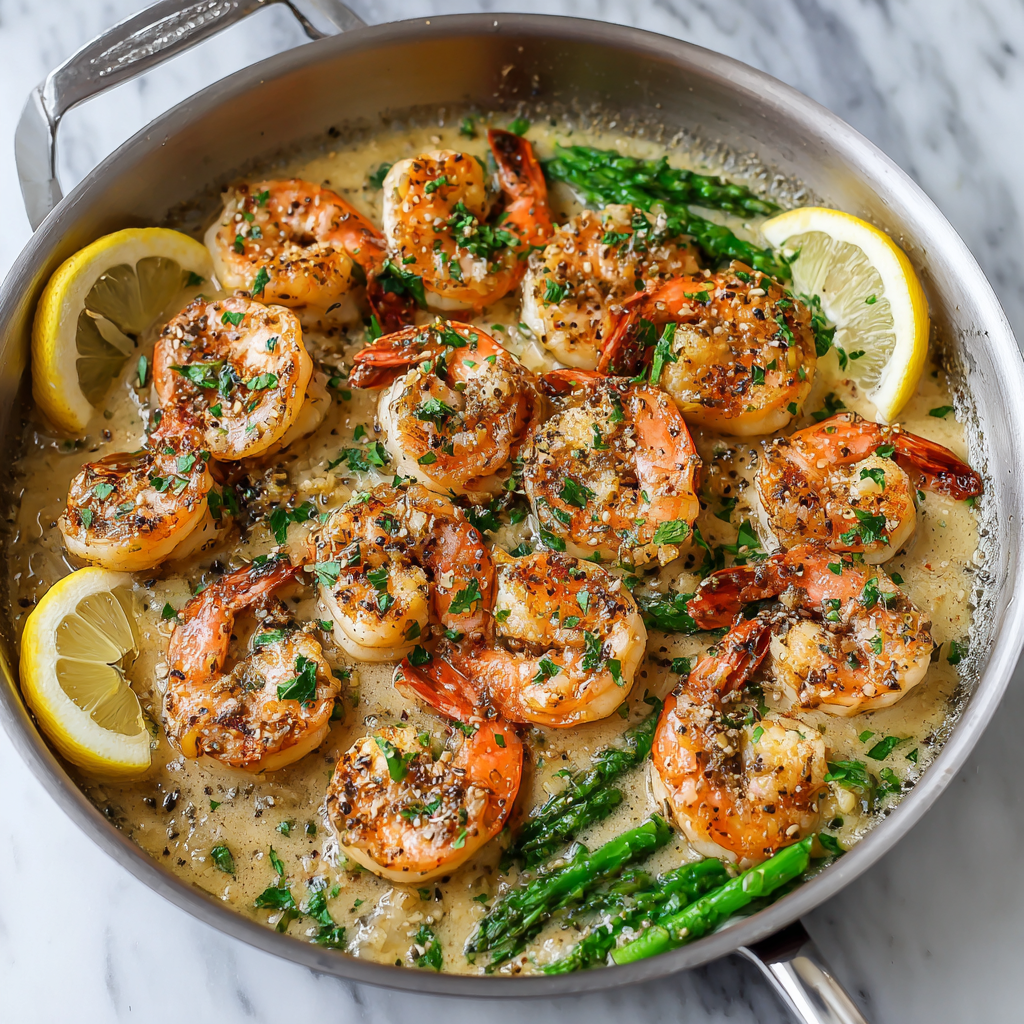 PrintCreamy Garlic Shrimp Skillet : Lightened-Up, High-Protein Indulgence