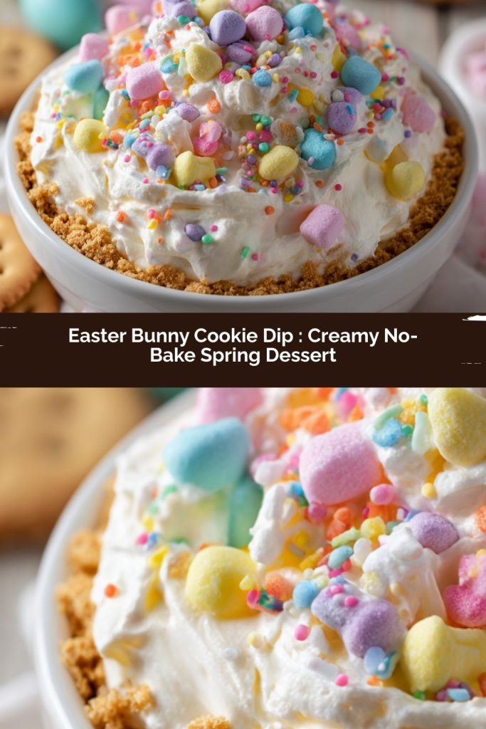Let’s talk about the star of the show: Easter Bunny Cookie Dip. Imagine the creamiest, dreamiest, fluffiest dip you’ve ever tasted, speckled with cheerful pastel candies and sprinkles that just scream “springtime celebration.” It’s sweet, it’s playful, and it has this magical ability to make everyone—from tiny toddlers to grown-up guests—light up with a smile. The best part? You don’t even need to turn on your oven. This is a no-bake wonder that comes together in about ten minutes of active time, leaving you free to enjoy the day, hide those eggs, or simply sip on a cup of tea while it chills.