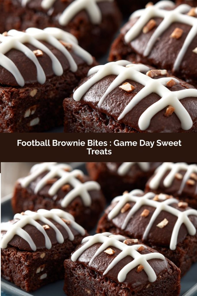 Presentation is the final play! Arrange your finished Football Brownie Bites on a large platter or a wooden cutting board lined with green parchment paper to mimic a football field. For an extra festive touch, you can sprinkle a little powdered sugar “chalk” around the edges. They’re perfectly portable, so they’re ideal for a dessert table, for passing around during halftime, or for packing up to take to a tailgate. Just watch them disappear!