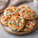 These Fruity Pebbles Cookies are proof that joy belongs in the kitchen. They’re buttery, soft, and bursting with color — the kind of treat that makes even an ordinary afternoon feel like a celebration. Every bite carries that nostalgic, cereal-milk magic that instantly transports you back to childhood. Whether you’re baking them for a party, a lunchbox surprise, or just because the day could use a little extra color, these cookies are guaranteed to bring smiles. So go ahead — bake a batch, pour yourself a glass of milk, and taste a little piece of happy.
