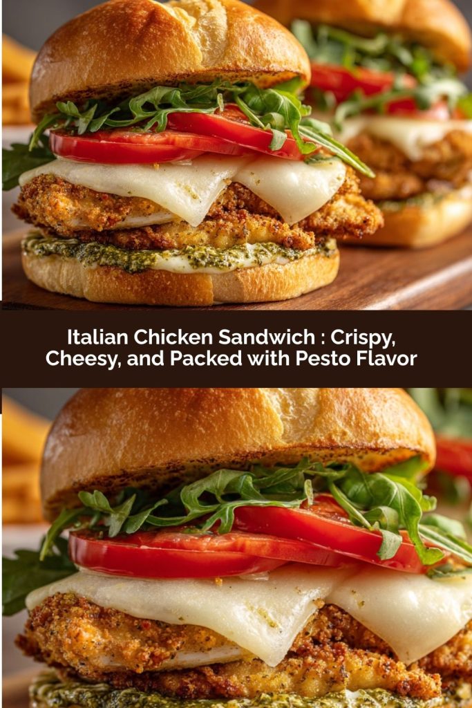 This Italian Chicken Sandwich brings together crispy golden chicken, creamy pesto mayo, and melted provolone for a crave-worthy bite that’s simple but unforgettable. Layered on a soft toasted bun with fresh greens or tomato, it’s perfect for lunch, dinner, or your next sandwich obsession.