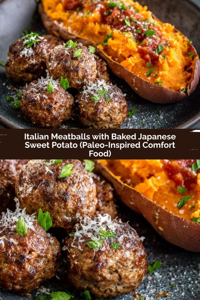Italian Meatballs with Baked Japanese Sweet Potato (Paleo-Inspired Comfort Food)