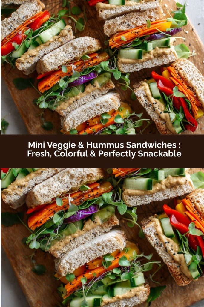 These Mini Veggie & Hummus Sandwiches are proof that fresh, simple ingredients can create something truly special. The combination of creamy hummus, crisp, colorful vegetables, and soft mini rolls makes every bite feel joyful, satisfying, and just a little festive. They’re perfect for parties, lunchboxes, or a light weekday lunch that feels exciting rather than routine.