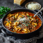 This One-Pot Lasagna Soup is proof that comfort food can be indulgent, hearty, and surprisingly simple all at once. It captures every layer of classic lasagna—the rich meat sauce, tender noodles, and melty cheeses—without the fuss of multiple pans or a long bake. The beauty of this recipe is its flexibility: swap proteins, add veggies, or adjust the heat to suit your mood, and it’s still pure, cozy perfection.
