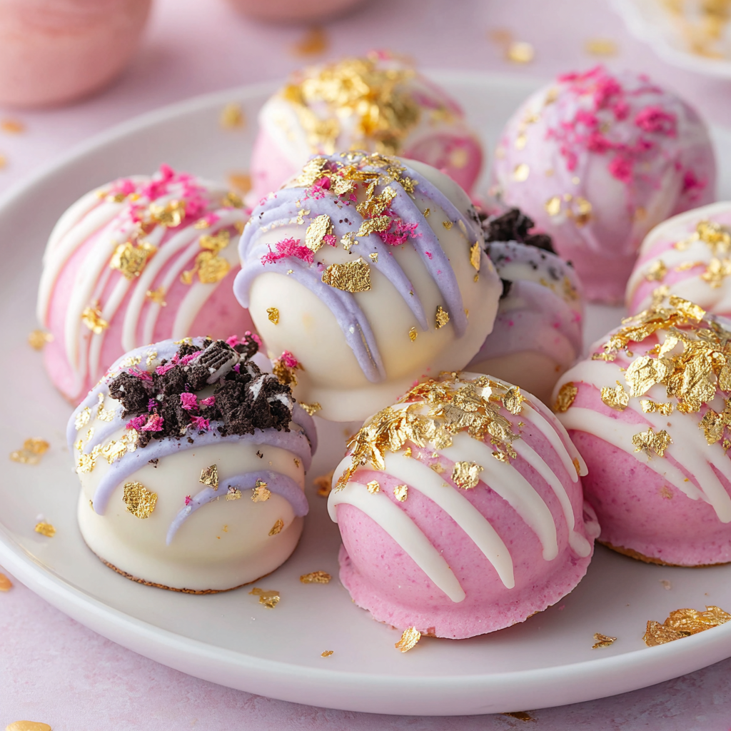 These Pastel Oreo Truffle Bites are creamy, chocolatey, and irresistibly cute. Crushed Oreos blended with cream cheese create a rich, fudgy center that melts in your mouth. Each bite is dipped in tinted white chocolate for soft pastel tones, then decorated with edible glitter, crushed freeze-dried strawberries, or delicate gold leaf for an upscale finish. Perfect for Easter, baby showers, birthdays, or elegant dessert boards, these truffles deliver maximum visual impact with minimal effort.