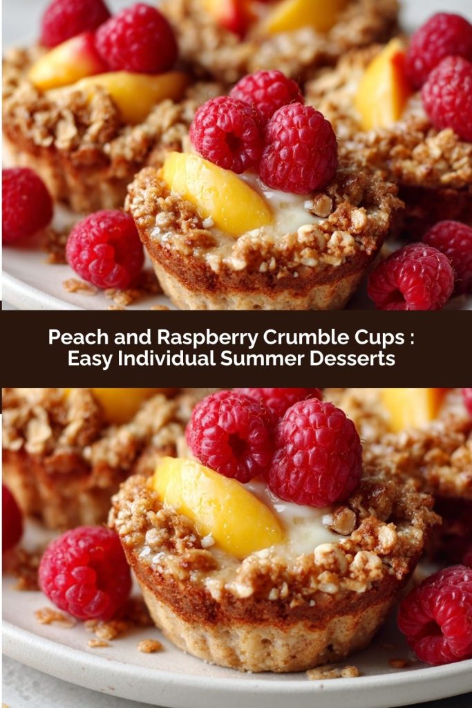 These Peach and Raspberry Crumble Cups are the perfect way to enjoy sweet summer fruit in a simple, single-serve dessert. Juicy peaches and tart raspberries are baked under a buttery oat crumble topping until golden and bubbling. They’re easy to make, naturally sweetened, and ideal for picnics, parties, or cozy nights in. Serve warm with a scoop of vanilla ice cream or yogurt for a seasonal treat everyone will love.