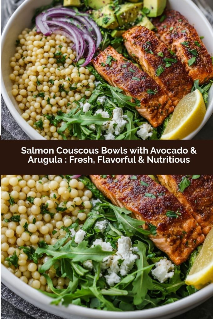 PrintSalmon Couscous Bowls with Avocado & Arugula : Fresh, Flavorful & Nutritious