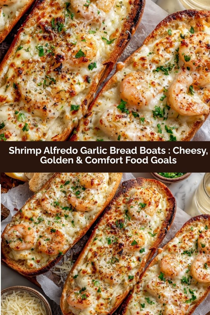 PrintShrimp Alfredo Garlic Bread Boats : Cheesy, Golden & Comfort Food Goals