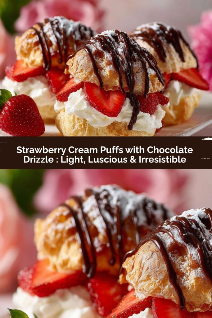 Say hello to your new dessert obsession—Strawberry Cream Puffs. These show-stopping treats combine crisp, golden pastry with fluffy whipped cream, juicy strawberries, and a hint of silky chocolate drizzle. Whether shaped into hearts for a romantic touch or classic rectangles, they’re easy to make, gorgeous to serve, and even better to eat. Perfect for tea time, celebrations, or when you simply want to impress.