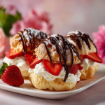 Say hello to your new dessert obsession—Strawberry Cream Puffs. These show-stopping treats combine crisp, golden pastry with fluffy whipped cream, juicy strawberries, and a hint of silky chocolate drizzle. Whether shaped into hearts for a romantic touch or classic rectangles, they’re easy to make, gorgeous to serve, and even better to eat. Perfect for tea time, celebrations, or when you simply want to impress.