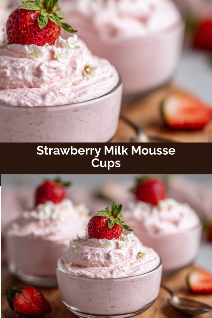 At the end of the day, these Strawberry Milk Mousse Cups are everything I adore in a dessert: simple, nostalgic, a touch whimsical, and guaranteed to make someone smile. They’re the kind of treat that feels both effortless and thoughtful, like a little love note served in a glass. Whether you’re making them for a special celebration, a family movie night, or just because you deserve something sweet (and you do!), I hope they bring a bit of that same joy my grandma’s strawberry milk always brought me.