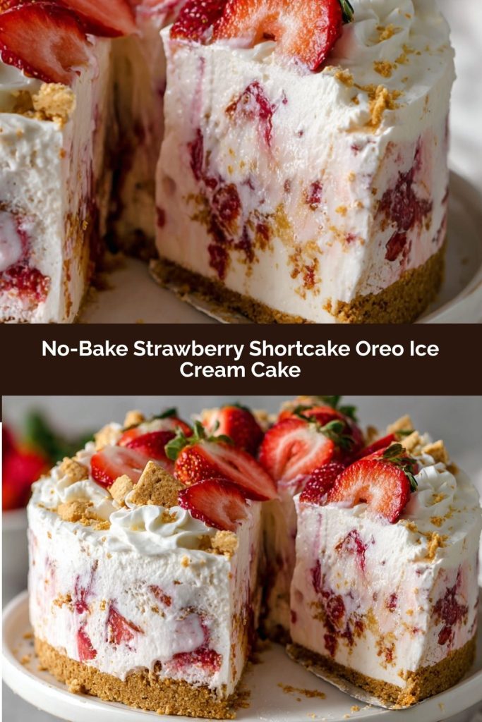 But let’s be real—sometimes the classic versions can feel a little… expected. That’s why I’m utterly obsessed with the mashup we’re making today. We’re taking everything magical about old-fashioned strawberry shortcake—the berries, the cream, the tender crumb—and giving it a frozen, fun, and fabulously easy twist. Introducing the Strawberry Shortcake Oreo Ice Cream Cake. No oven, no fuss, just layers of creamy strawberry and vanilla ice cream, fresh berries, and a Golden Oreo crust that brings the perfect buttery crunch.