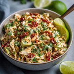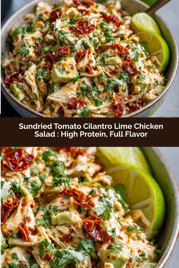 This isn’t just any chicken salad. This is a high-protein, flavor-bomb masterpiece that dances on your palate. Imagine tender, shredded chicken hugged by a creamy-yet-tangy dressing, punctuated by the sweet, intense chew of sundried tomatoes, and brightened up with a serious hit of fresh cilantro and lime. It’s a symphony of textures and tastes that manages to be both incredibly satisfying and refreshingly light. Whether you’re a meal-prep pro, someone searching for a quick and dazzling light dinner, or just tired of the same old flavors, this recipe is your ticket to deliciousness. So, grab your favorite mixing bowl—let’s make your next meal something truly magical.